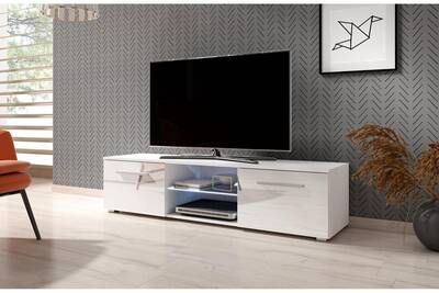 Meuble tv blanc brillant. Ne manquez pas de decouvrir toute letendue de notre offre a prix casse. Meuble tv meuble salon edith 140 cm blanc mat gris brillant avec led style moderne nous vous presentons edith. Avec son eclairage led bleu ce meuble tv design blanc apportera une ambiance particuliere a la venue de la soiree.